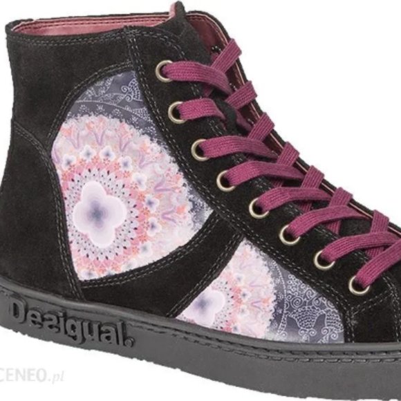 Desigual Rebeldia High Top Black Suede/Patent Sneakers - EU 40 US 9/9.5