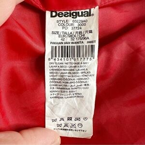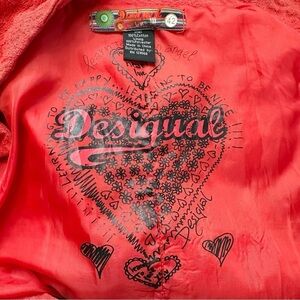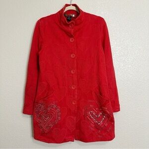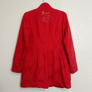 Desigual Red Heart Embroidered Jacquard Long Sleeves Peacoat, Sz Medium