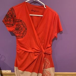 Desigual Red Short Sleeve Knotted Karlie Dress
