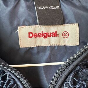 Desigual Size 40 Navy Full Zip Navy Jacket with Pink Floral Embroidered Hoodie
