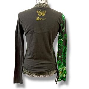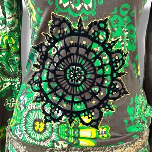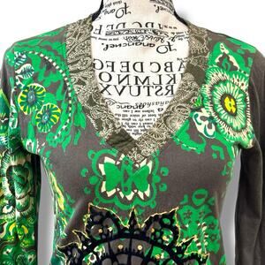 Desigual Size M Green Floral 100% Cotton Pullover Top Boho