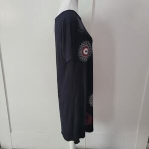 Desigual Size XL Black Mandala Print Short Sleeve Jersey Knit Boho Mini Dress