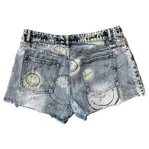 Desigual Smiley Denim Jean Shorts Womens 16 US 44 EU Distressed Grunge Skater