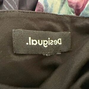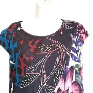Desigual Stretch Mesh Dress Size Small S Black Floral Print Cap Sleeve 2 Layer