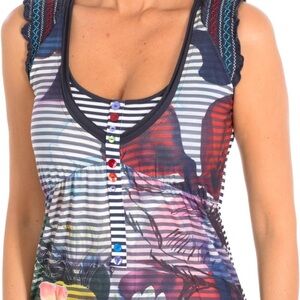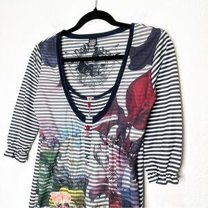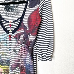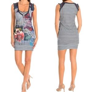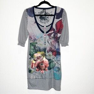 Desigual Striped Layered Colorful Button Mini Dress Small
