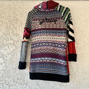 Desigual Sweater Womens L Chunky Patchwork Zip Asymmetrical