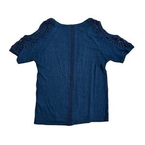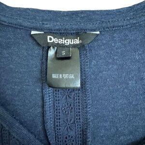 Desigual TS Sweet Summer Linen Blend Cold Shoulder Top Size Small Navy Blue