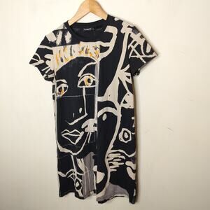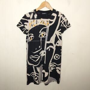 Desigual abstract face cotton short sleeve t-shirt dress. Size L. (22904)
