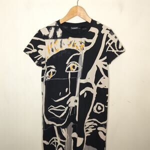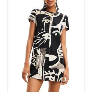 Desigual T-Shirt Dress Face Abstract Art Cotton Short Sleeve