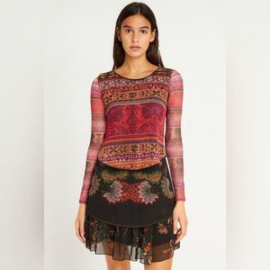 Desigual Tiered Layered Long Sleeve Dress Multicolor Print NWT Size S