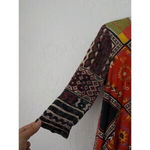 Desigual Top Women Sz Large Mixed Media Orange Colorful Tribal Western Boho Art