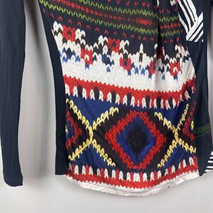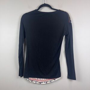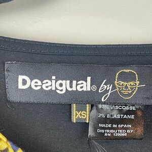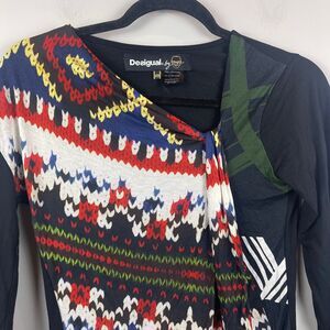 Desigual Top Women's XS Black Multi Printed Stretch Asymmetrical Neck Artsy Boho