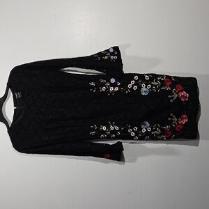 Desigual Vermond Floral Boho Embroidered Black Dress EU 36 US 4