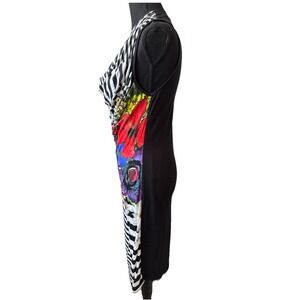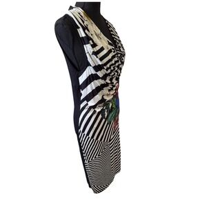 Desigual Vest Sara Dress Women 51V20E1 Color 2000 Black Size Large Cowl Neck Floral and Stripes