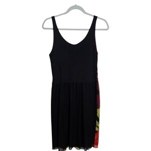 Bold dress with vibrant floral design. Features sleeveless cut and scoop neck. Ideal for a chic statement.