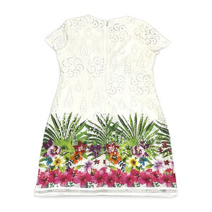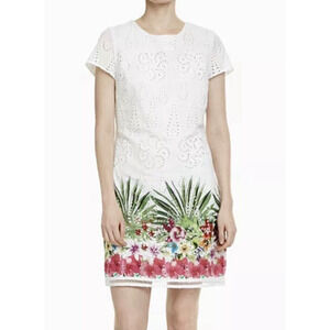 Desigual White Eyelet Sheath Dress Size 8 EU 42 Floral Design Vest Denver. This dress is new with tags. Approximate measurements: Armpit to armpit: 19” Full length: 36”
