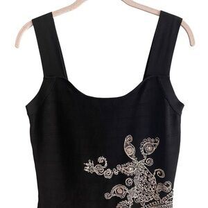 Desigual Women's Black Bodycon Dress Paisley Print Detail Large Sleeveless