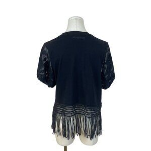 Desigual Womens Black Lace Fringe Hem Top Size XS
