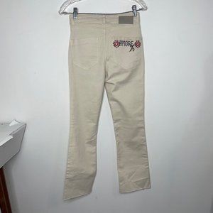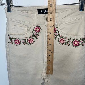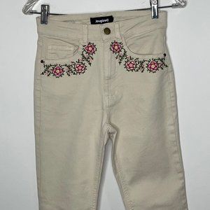 💗Desigual Women’s Denim Cream Pants Embroidered Amore Floral Size EUR 36