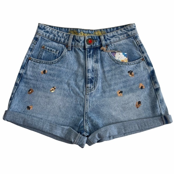 Desigual Women’s High Waisted Leopard Sequins Embellished Mom Denim Shorts 4