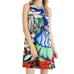 Desigual Womens Multi Colored Floral Abstract Lined Sleeveless Dress Size L