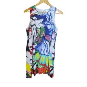 Desigual Womens Multi Colored Floral Abstract Lined Sleeveless Dress With Keyhole Button Back, Size L, Please See Measurements For Best Fit, Really Nice Condition!