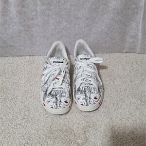 Desigual Women's Shoes Cosmic Caras Black and Red Graphic Sneakers SIZE 6