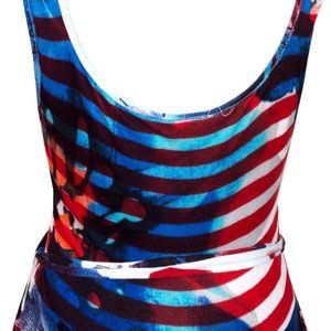 Awesome Red, White & Blue, Multi Color Sundress with Striped Tank Top and Tier Bottom. Decorated with Desigual Embellishments.