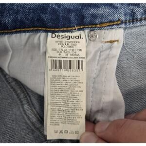 Desigual Women's Wide Leg Jeans US (12) High Waist Crop Med Rinse Preppy Boho