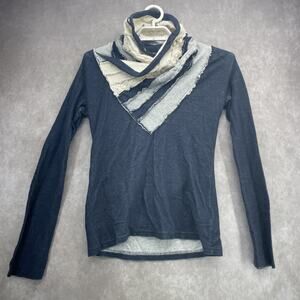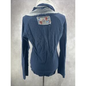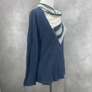 Desigual Womens XL Patchwork Shawl Scarf Neck Sweater Denim Blue Ivory Lace Cozy