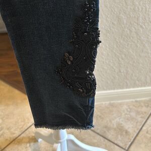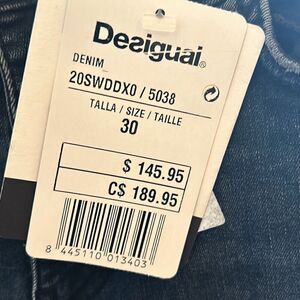 Desigual Women's 30 Beaded Embroidered Ankle Jean Dark Wash Distressed Denim New