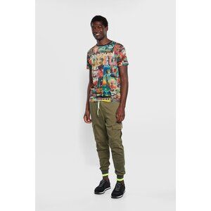 Desigual World Postcards Graphic T-Shirt Men’s Medium Colorful Travel Print Tee. 100% cotton. Machine wash. Pre-owned in excellent condition.