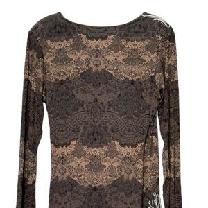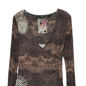 Desigual Wrap Dress Size M Brown Embroidered Stretchy Floral V-Neck Boho