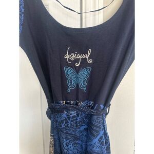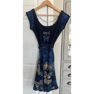 Desigual Y2K Blue Butterfly Floral Dress Women's Small Fairycore