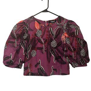 Desigual (collab. w/ Christian Lacroix) floral cropped blouse w/ back zip sz M