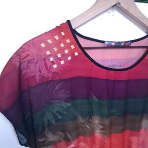 Desigual la vida es chula Dress Embroidered Striped Blouson 40 Large 10