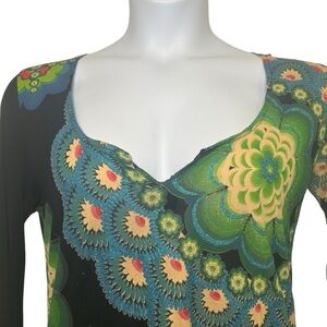 Desigual long sleeve artsy tunic top size large multicolor glitter mandala boho