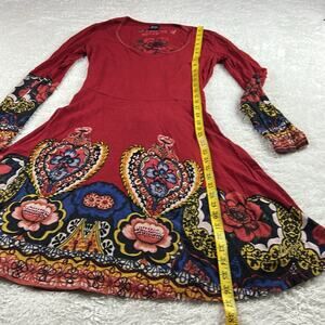 Desigual long sleeved fit and flare red paisley soft knit dress, size med
