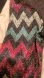 Never worn. Too small for me. 15" pit to pit, not much stretch in the arms. It's so cute, fun, and funky. Metallic black, silver with burgundy, plum, and teal accents with chevron and checkerboard design. Although it's never been worn, there is a stitching flaws on the bottom of t-shirt, but barely noticeable. See last picture.