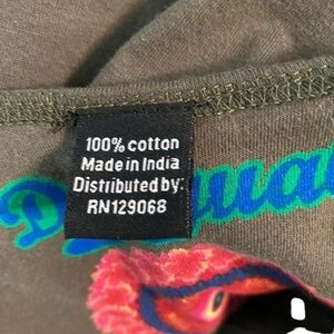 Color is khaki green with lovely colorful prints and some soft shiny gold details.