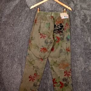 Desigual tensel camoflower mickey mouse print art to wear pants size small