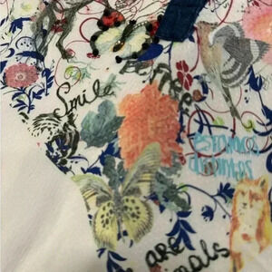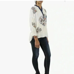 Desigual women’s white embroidered blouse 3/4 sleeve 3 button neck size L