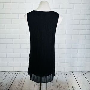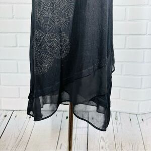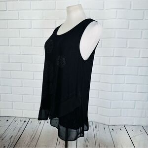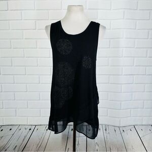 Desigual Black Geometric Print Ruffle Hem Tank - Size Large