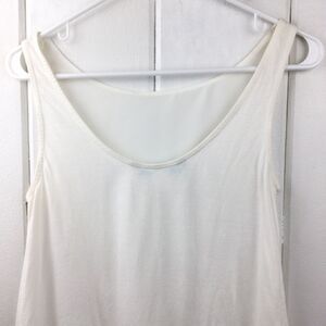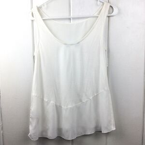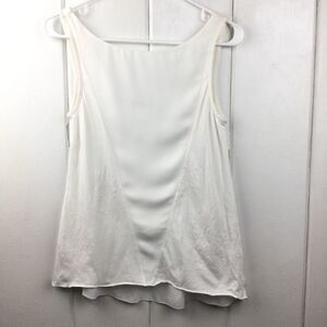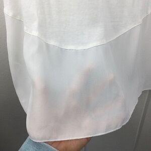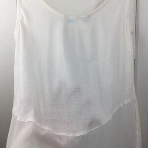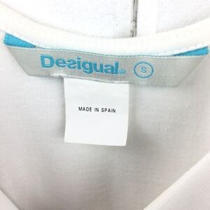 Desigual Cream Triangular Panel Tank with cream raised floral/heart patterns. Size - Small. Modal/cotton/polyester mix. (See fabric tag in photos.) Raised designs on right & left sides of front. Lower panel of shirt back is transparent. Super cute with no stains or tears. Made in Spain.