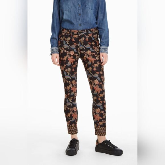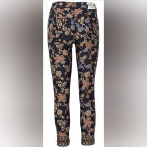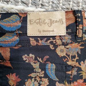 Navy Blue with Multicolor Floral Print Mid-rise Stretch Jeans