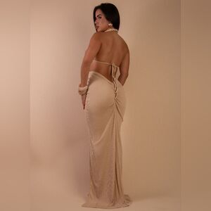 Sculptural, sensual, and unapologetically bold—this gown is a true work of art. With twisted rope detailing, a structured bust, and goddess-like draping, it wraps the body in divine energy. Made for entrances that feel like myth, this is the dress for a modern-day deity.