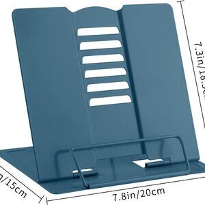 6 adjustment points: Length-7.3in, Width-7.8in. The cookbook holder can be adjusted to an appropriate angle through the 6 notches on the movable back support as needed, which promotes the correct posture and reduces the fatigue of long-term reading.