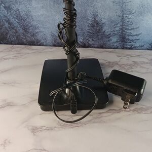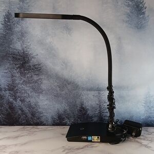 in new condition. great desk lamp with USB cable insert to charge phone and other devices. light has levels of brightness. lamp can be adjusted for comfort.