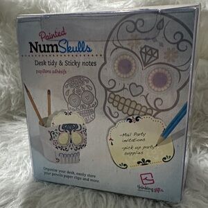 Organize your workspace with the vibrant Desk Tidy & Sticky Notes. Featuring a colorful skull design, this set adds a playful touch to any desk. Perfect for keeping your notes handy and your desk tidy.
