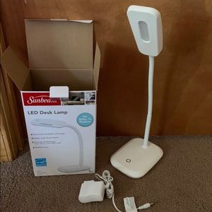 Sunbeam LED desk lamp (white). Never been used only taken out the box for pictures. Perfect for college dorms